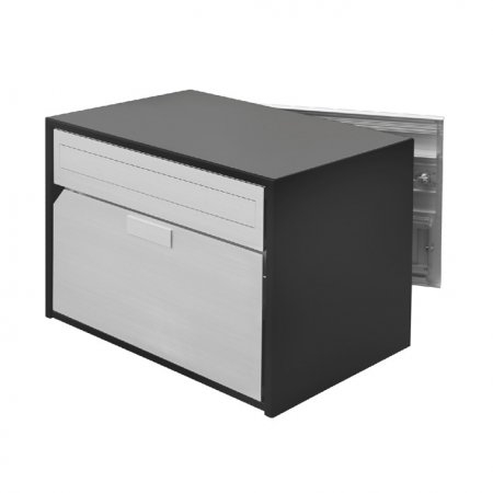Briefkasten mit Gehäuse in anthrazitgrau RAL 7016, Front Dessinal